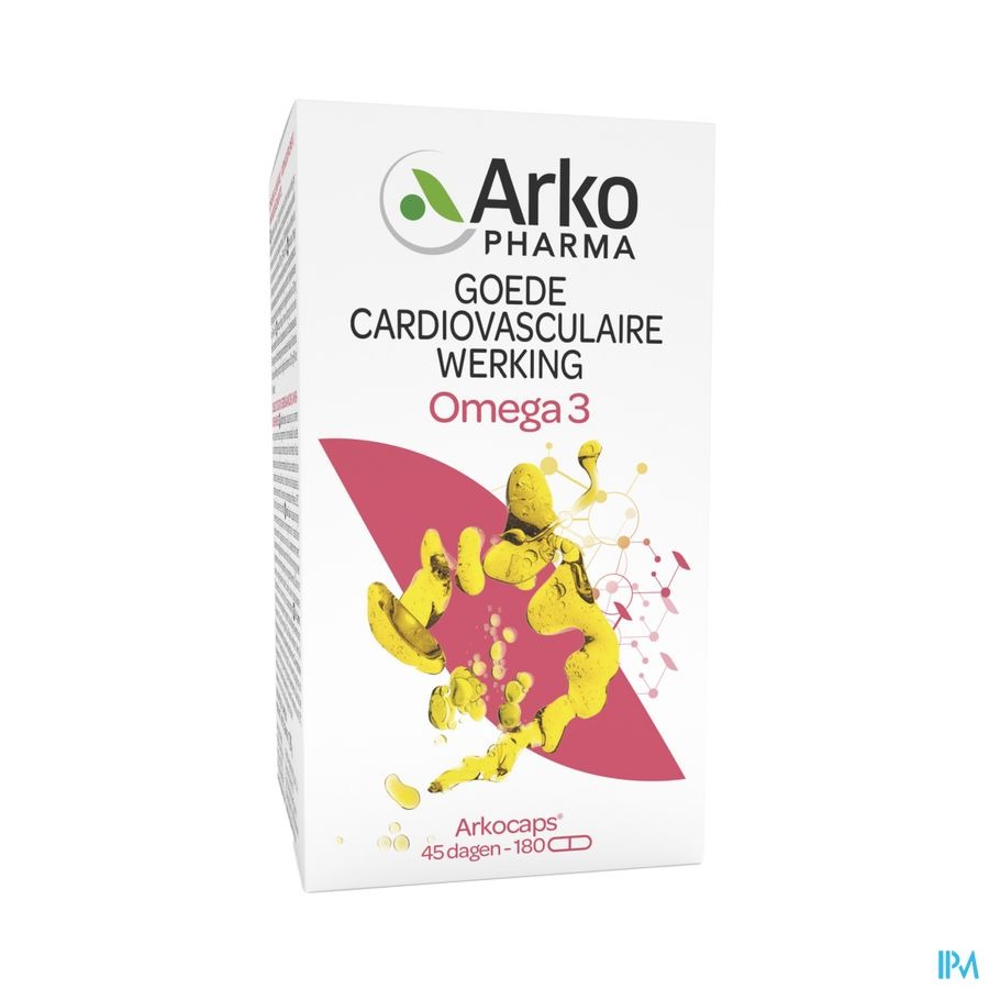 Arkocapsules® Omega 3 is een voedingssupplement. Arkocapsules® Omega 3, afkomstig uit de zee, is rijk aan twee essentiële vetzuren: eicosapentaeenzuur (EPA) en docosahexaeenzuur (DHA) die een normale werking van het hart helpen behouden. Het gunstige effect wordt verkregen door het dagelijkse verbruik van 250 mg van EPA en DHA.