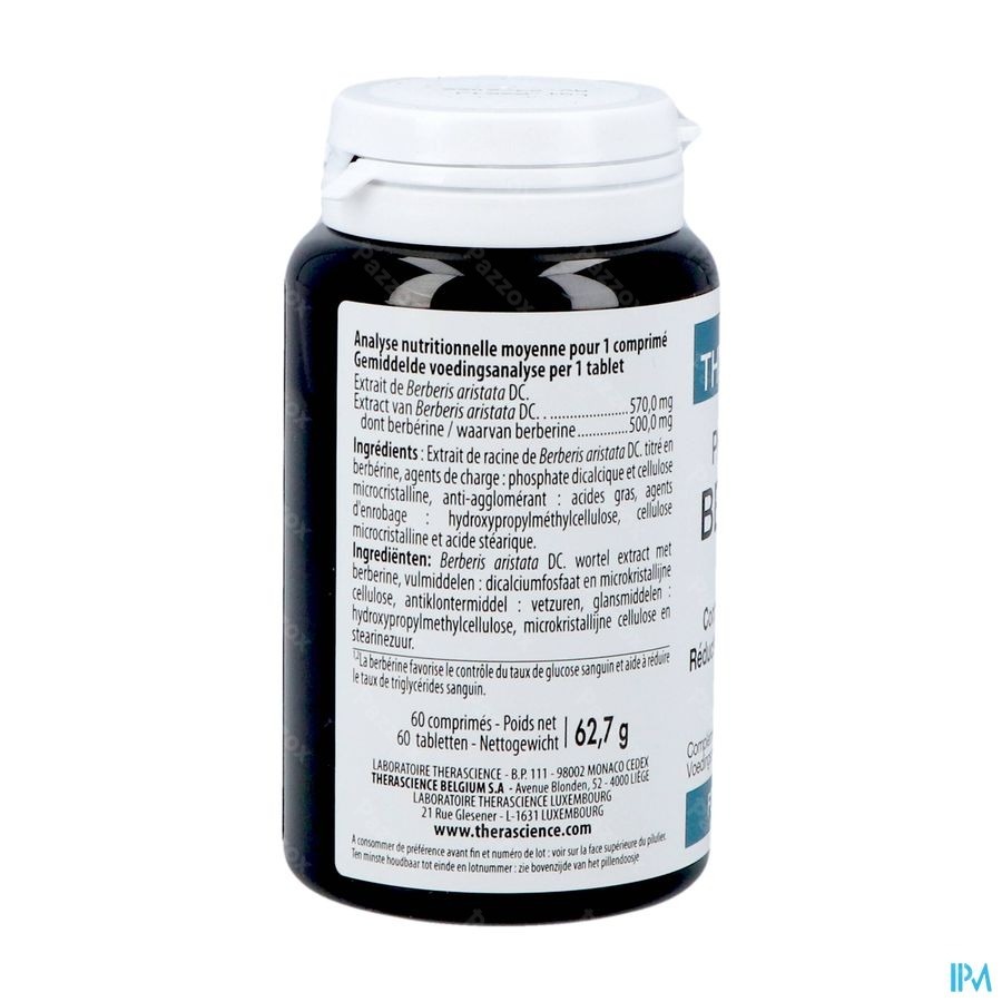 Berberis aristata DC. wortel extract met berberine, vulmiddelen : dicalciumfosfaat en microkristallijne cellulose, antiklontermiddel : vetzuren, glansmiddelen : hydroxypropylmethylcellulose, microkristallijne cellulose en stearinezuur.