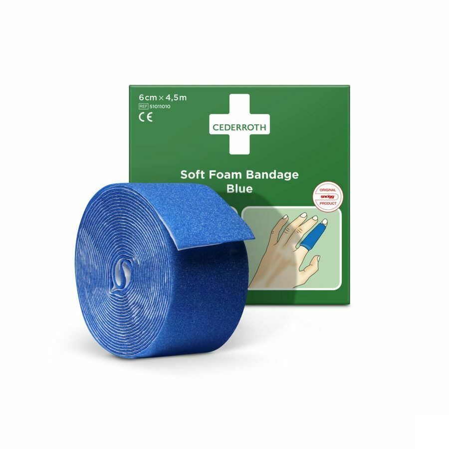 Cederroth Soft Foam Bandage Blue 4,5 m fungeert zowel als pleister als verband en is geschikt voor kleinere wonden. Gemakkelijk aan te brengen op vingers, handen, armen, tene...