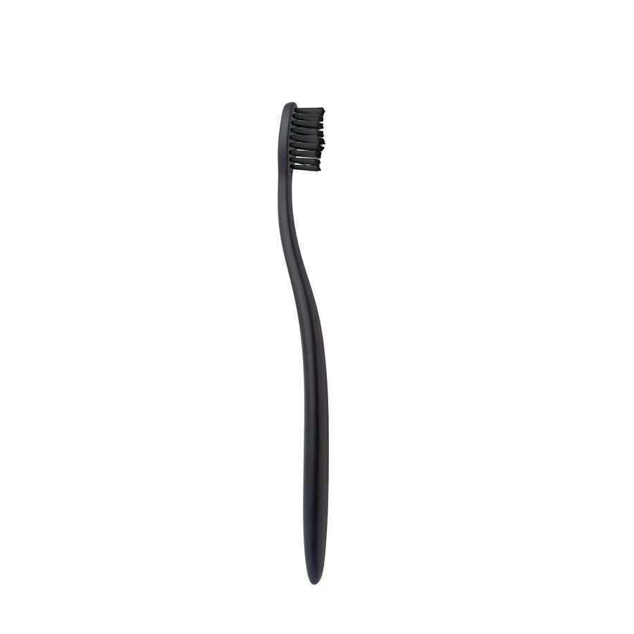 Een tandenborstel van 100% gerecycled plastic met plantaardige borstelharen.