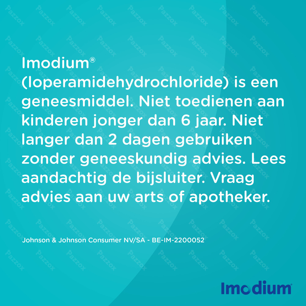 Imodium capsules bevatten de werkzame stof loperamide (loperamidehydrochloride) waarmee de symptomen van zowel acute als chronische diarree veilig, snel en doeltreffend kunnen worden behandeld. Imodium capsules normaliseren de overmatige darmactiviteit, zodat uw stoelgang weer vaster wordt en de symptomen verdwijnen. Hiermee wordt uitdroging door verlies van vocht en elektrolyten voorkomen. Imodium heeft een transitnormaliserend en antisecretoir effect. Imodiumcapsules zijn eveneens aanbevolen bij reizigersdiarree. In overleg met uw arts kunnen Imodium capsules ook worden voorgeschreven bij behandeling van diarree bij het prikkelbaredarmsyndroom.