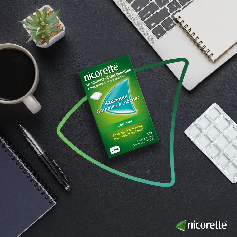 - Nicorette Freshmint Kauwgom met 2 mg nicotine is geschikt voor personen die tot 20 sigaretten per dag roken. Voor sterk afhankelijke rokers wordt de 4 mg kauwgom aangeraden.