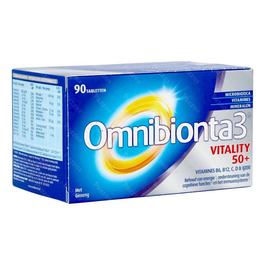 Dankzij de unieke combinatie van gepatenteerde melkfermenten, vitamines, mineralen, ginseng en luteïne, kunt u met OMNIBIONTA®3 50+ uw vitaliteit activeren om optimaal te genieten van uw dagelijkse bezigheden. Vitamine A, B6, B12, C, D, folaten (foliumzuur), ijzer, selenium en zink bijdragen tot een normale werking van het immuunsysteem. Ijzer, niacine (B3), pantotheenzuur (B5), riboflavine (B2), folaten (foliumzuur), vitamine B12, B6 en C helpen vermoeidheid tegen te gaan.