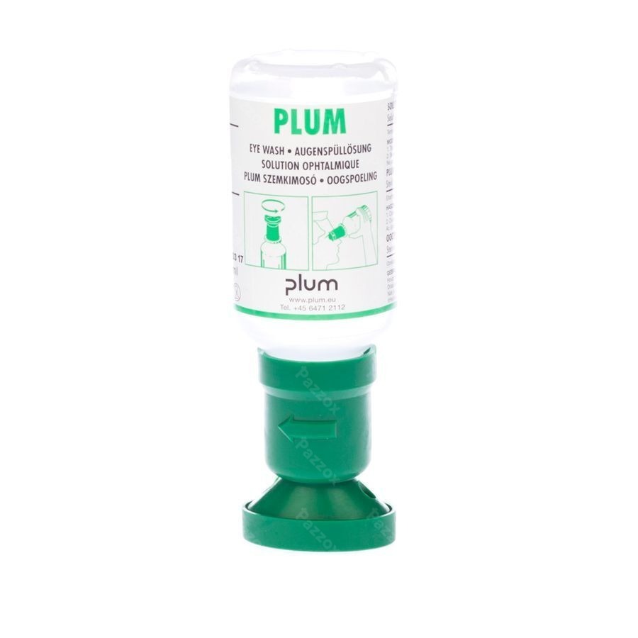 Plum oogspoelflessen bevatten een steriele 0,9% natriumchlorideoplossing, die overeenkomt met het natuurlijke zoutgehalte van het oog. De isotone vloeistof wordt goed verdragen en is een EHBO hulpmiddel voor het spoelen van de ogen. Het product is voorzien van een ergonomisch gevormde oogschaal en maakt een gelijkmatige en zachte sproeistraal mogelijk. De fles moet bij het spoelen licht ingedrukt worden. Er is ook een DUO-uitvoering verkrijgbaar met een opzetstuk waarmee beide ogen gelijktijdig gespoeld kunnen worden, voor werkomstandigheden met een bijzonder hoog risico. Het gaat om een medisch hulpmiddel volgens EU-richtlijn 93/42/EEG. Er is een veiligheidsinformatieblad verkrijgbaar