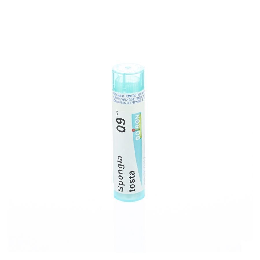 Spongia Tosta 9ch Gr 4g Boiron Indicatie Droge, blaffende hoest Gebruik Volwassenen en kinderen: 3 maal daags 5 pillen onder de tong oplossen tot de symptomen verlicht zi...