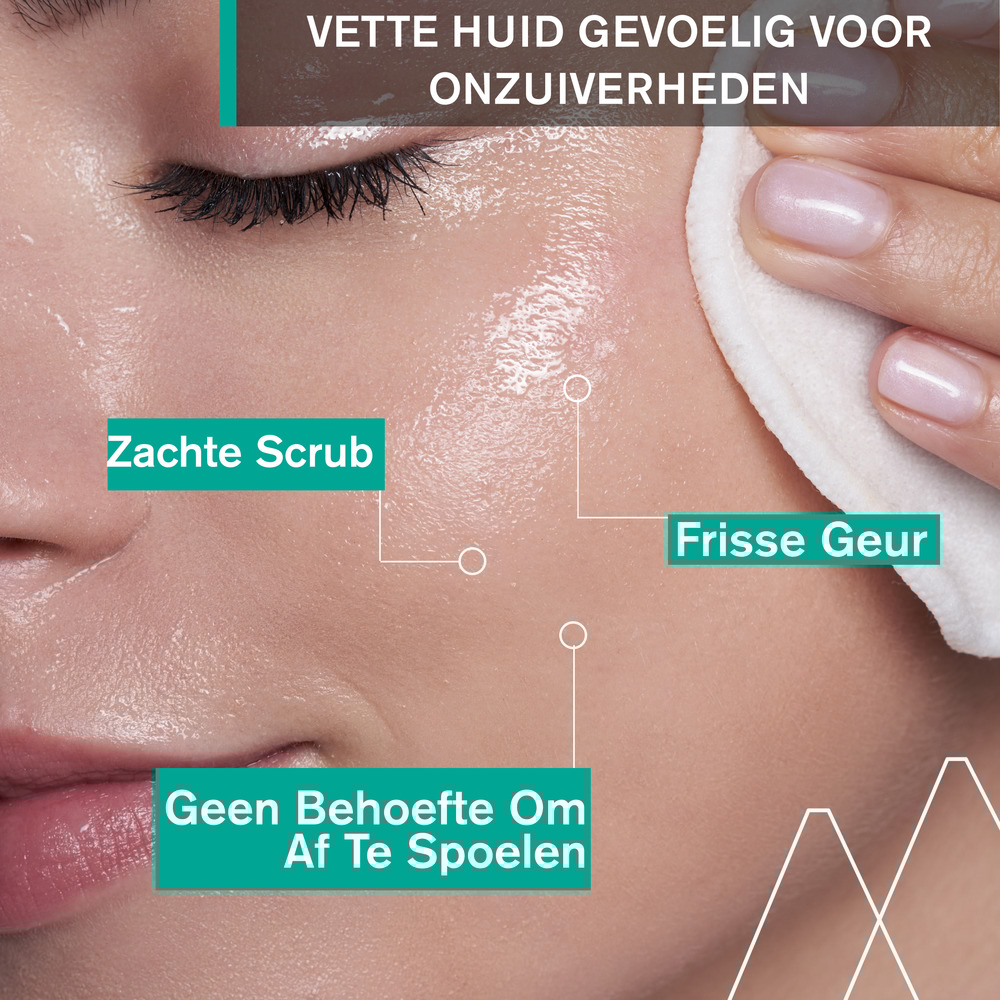 - Eenmaal per dag een wattenschijfje met de toner op het gezicht aanbrengen, vooral op de T-zone en het voorhoofd.