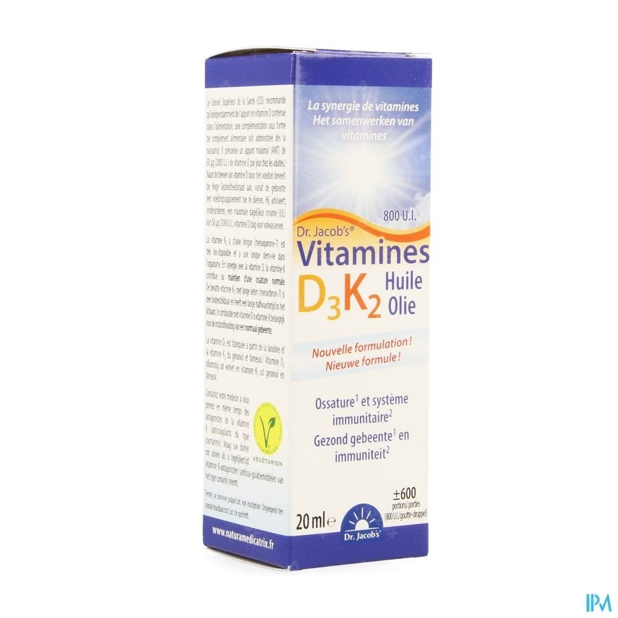 Dr Jacob's Vitamine D3 800 IU + K2 19µg Druppels 20ml